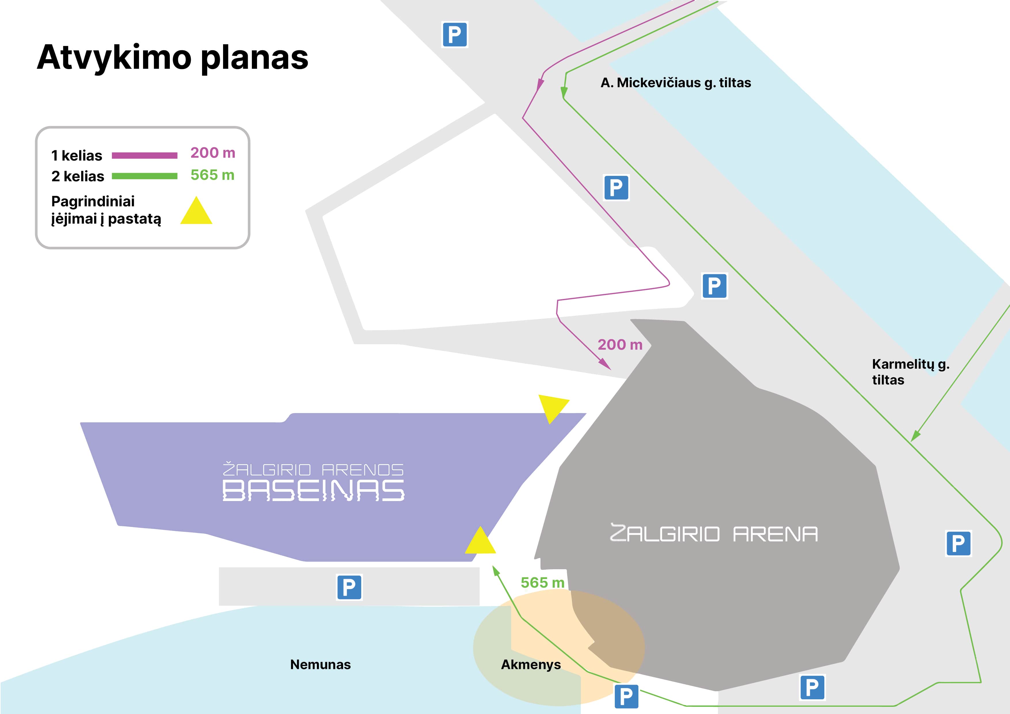 Prie „Žalgirio“ baseino galima ateiti pėsčiomis arba atvykti automobiliu. Renkantis atvykimą automobiliu jums reikės: