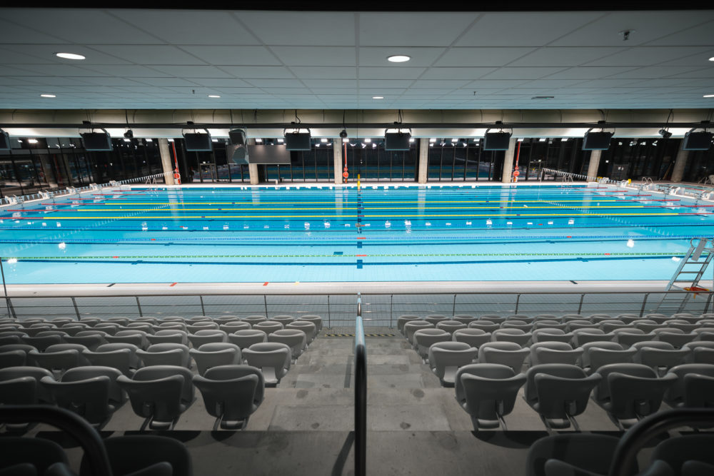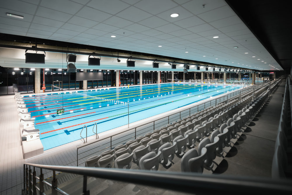 Greta Olimpinio baseino įrengtos tribūnos žiūrovams, kur varžybas gali stebėti net 500 žiūrovų bei papildomas 25 metrų baseinas su dviem takeliais vaikų mokymui plaukti.
